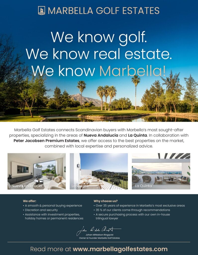 We at Marbella Golf Estates are pleased to introduce a dedicated service designed for Scandinavian buyers seeking property in Marbella. Our goal is to provide a seamless, secure, and highly personalized experience, guiding clients from the very first inquiry through to the final closing with discretion and care. In close collaboration with the well-established local […]